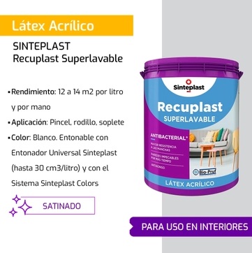 Látex Recuplast Superlavable Interior Satinado 10 Lt Sinteplast